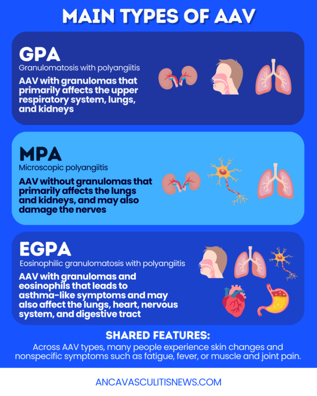 Knowing which AAV type a person also helps doctors and patients monitor the organs most likely to be affected. The specific type and pattern of organ involvement can also influence AAV prognosis.